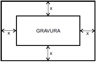 (03 de 15) Vunesp 2015 – A figura mostra uma gravura retangular, de lados iguais a 20 cm e 30 cm, posicionada de forma centralizada em uma folha também retangular, de área igual a 1 200 cm², de modo que, na folha, restassem margens (superior, inferior e laterais) de largura constante.