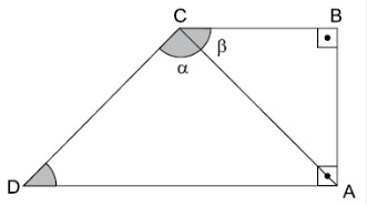 (10 de 10) Na figura, o trapézio retângulo ABCD é dividido por uma de suas diagonais em dois triângulos retângulos isósceles, de lados AB=BC e AC=DC.