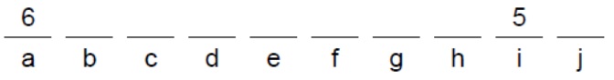 Cada espaço vazio deverá ser preenchido por um número inteiro e positivo, de modo que a soma dos números de três espaços consecutivos seja sempre igual a 15. Nessas condições, no espaço identificado pela letra g deverá ser escrito o número