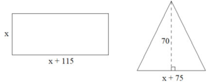 Considerando o retângulo e o triângulo representados fora de escala, é correto afirmar que valor de x, tal que os dois polígonos tenham a mesma área, é um número