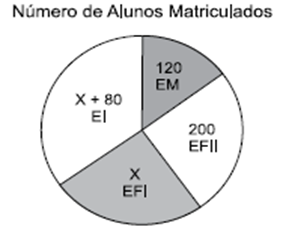O gráfico mostra algumas informações sobre o número de alunos matriculados no ensino infantil (EI), ensino fundamental I (EFI), ensino fundamental II (EFII) e ensino médio (EM), de uma escola.