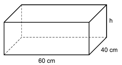 Um recipiente, com a forma de paralelepípedo reto retângulo, tem 60 cm de comprimento, 40 cm de largura e altura h, conforme figura, sendo o seu volume V igual a 60 000 cm³.