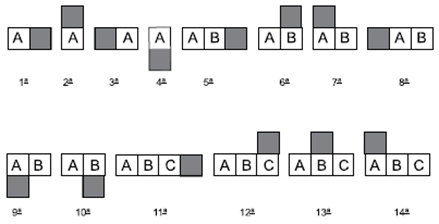 Estão, a seguir, as 14 primeiras figuras de uma sequência figural ilimitada, criada com um padrão lógico.