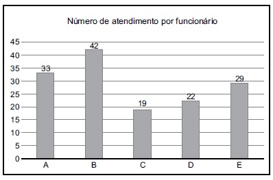 O gráfico a seguir mostra o número de atendimentos já realizados, por 5 funcionários, até uma determinada hora de um dia de trabalho.
